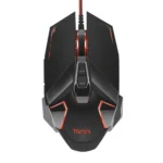 ماوس TM 768 GA با طراحی مشکی و نورپردازی LED، جلوه‌ای مدرن و حرفه‌ای به میز کار یا ست گیمینگ شما می‌دهد.